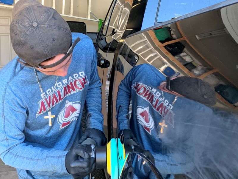 The ceramic coating is carefully applied by hand to the entire exterior of the vehicle.